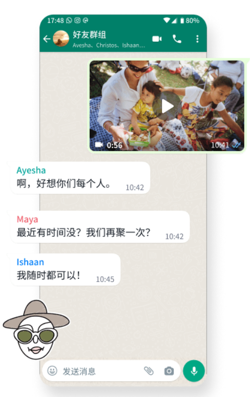 端到端加密让您的个人消息和通话更有安全保障。只有与您交谈的人和您自己可以读取或收听消息内容。除此之外,其他任何人(包括 WhatsApp中文网页版)都无法得知。
